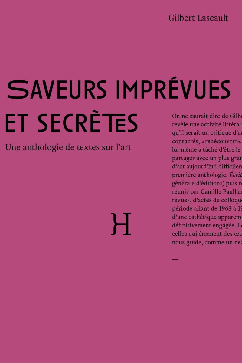 On ne saurait dire de Gilbert Lascault, dont l’abondante bibliographie révèle une activité littéraire constante depuis le milieu des années 1960, qu’il serait un critique d’art méconnu qu’il faudrait, selon les termes consacrés, « redécouvrir ». Il n’y a en effet pas lieu de le faire tant lui-même a tâché d’être le plus discret possible. Mais nous souhaitions partager avec un plus grand nombre de lecteurs des textes du critique d’art aujourd’hui difficilement accessibles, complétant en cela sa première anthologie, Écrits timides sur le visible, parue en 1979 (Union générale d’éditions) puis rééditée en 2008 (Kiron/Le Félin). Les textes réunis par Camille Paulhan pour ce volume sont issus de catalogues, de revues, d’actes de colloque ou de recueils variés, s’étirant sur une période allant de 1968 à 1994. Ils permettent d’appréhender la poésie d’une esthétique apparemment effilochée, manifestement énamourée et définitivement engagée. Les saveurs imprévues et secrètes, ce sont celles qui émanent des œuvres d’art et parmi lesquelles Gilbert Lascault nous guide, comme un nez manipulant des fragrances évanescentes.